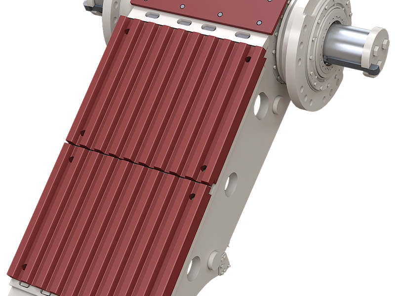 6、實(shí)現(xiàn)快速調(diào)整排料口,無(wú)論是液壓式還是機(jī)械式均可從兩側(cè)通過(guò)楔塊調(diào)整;